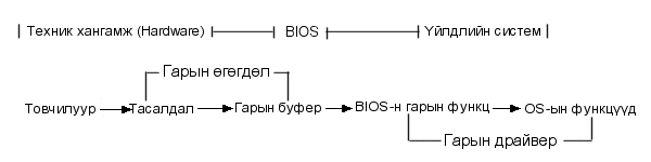 Ингээд эндээс үйлдлийн систем гарын драйверын тусламжтайгаар хүлээн авч дэлгэцэнд үзүүлэх эсвэл өгсөн тушаалыг гүйцэтгэнэ.